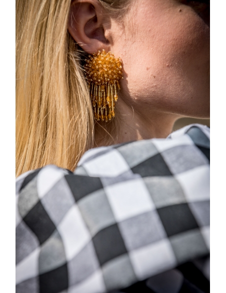 Pendientes de la colección en color naranja-oro. cierre con tuerca en acero.