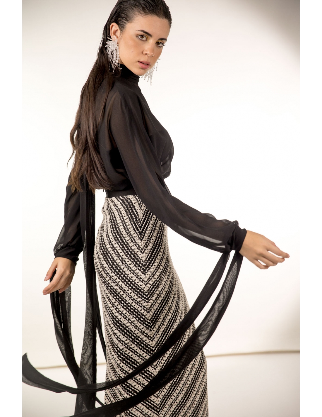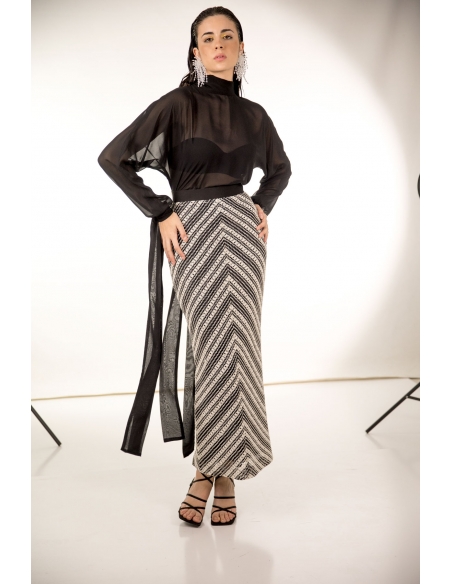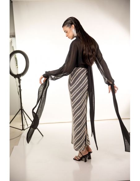 top gasa negra oversize con cierra en mangas y cuello con lazos.